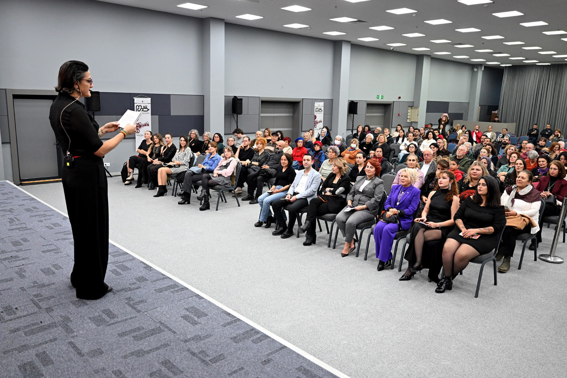 Festivalin açılış konuşmasını yaparak gösterimlerin Mersin’de gerçekleşmesinin hikayesini salonu dolduran yurttaşlarla paylaşan Kadın Gazeteciler Derneği Yönetim Kurulu Başkanı Ayşenur Önal ise, kadınların sinemada da eşitlik ve özgürlük için dayanışma içinde olduğunu vurguladı. Uçan Süpürge Vakfı’nın dünyanın kadınlar gözünden yansımalarını aktardığını kaydeden Önal, kadınların birlikteliğinin dayanışmaya ve eşitlik mücadelesine güç verdiğini dile getirdi. Mersin Büyükşehir Belediyesi’nin kadınların üretim süreçlerinin yollarını açtığını ifade eden Önal, “Mersin Sinema Ofisi ile ortak yaptığımız bu festivalin her anının hepimiz için daha güzel olması adına emek veren, başka bir yerel yönetimin mümkün olduğunu ve kadınların da kent yönetiminde söz sahibi olabileceğini gösteren Mersin Büyükşehir Belediyesi’ne teşekkür ederiz” diye konuştu.