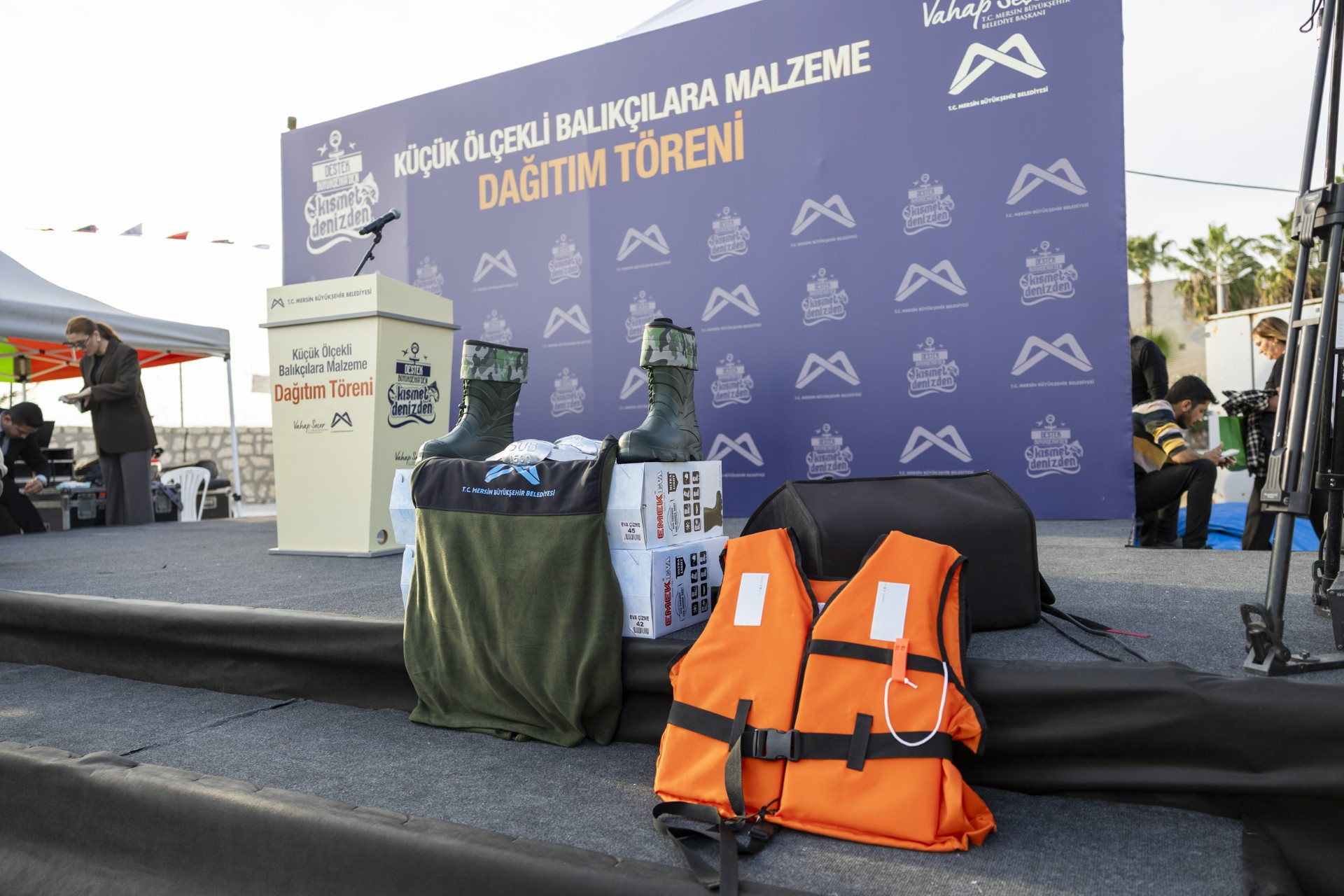 Türkiye Belediyeler Birliği Başkan Vekili ve Mersin Büyükşehir Belediye Başkanı Vahap Seçer, Mersin Büyükşehir Belediyesi Tarımsal Hizmetler Dairesi Başkanlığı tarafından, ‘Destek Büyükşehir’den Kısmet Denizden’ sloganıyla düzenlenen ‘Küçük Ölçekli Balıkçılara Malzeme Dağıtım Töreni’ne katıldı.