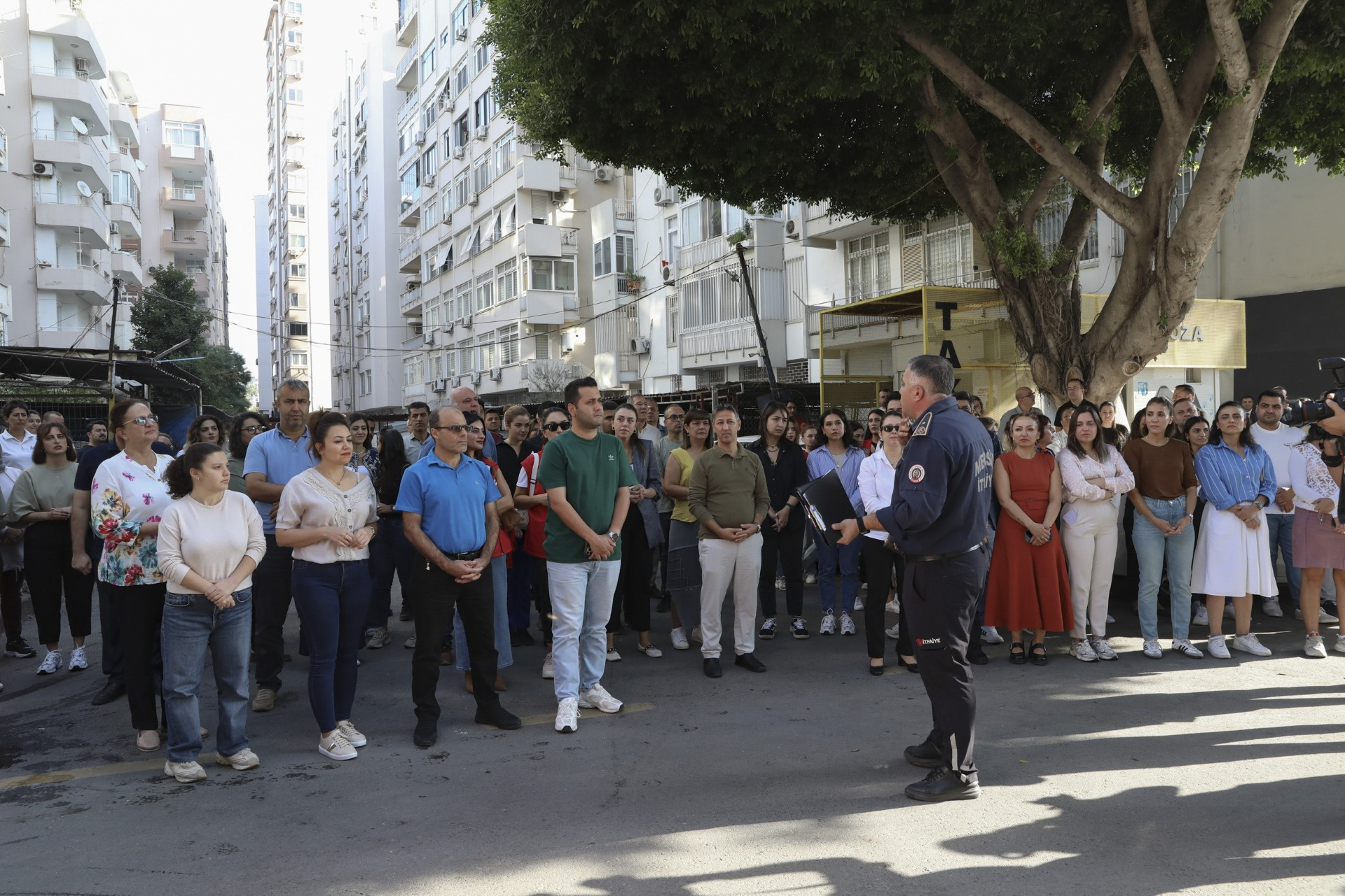 Mersin Büyükşehir Belediyesi İtfaiye Dairesi Başkanlığı’nda Eğitim Amiri olarak görev yapan Muharrem Çavdar, senaryo gereği bir tatbikat gerçekleştirdiklerini belirterek, “Bu tatbikata göre, birinci katta klima ünitesinden kaynaklanan bir yangın çıktı. Yangını gören personel, binanın yangın alarm butonlarına bastı. Akabinde personel, binanın yangın merdivenleri ve alt kattan tahliye edildi. Tahliye süresi ortalama 3,5 dakika sürdü ki, bu standartlara uygun bir değerdir” dedi.