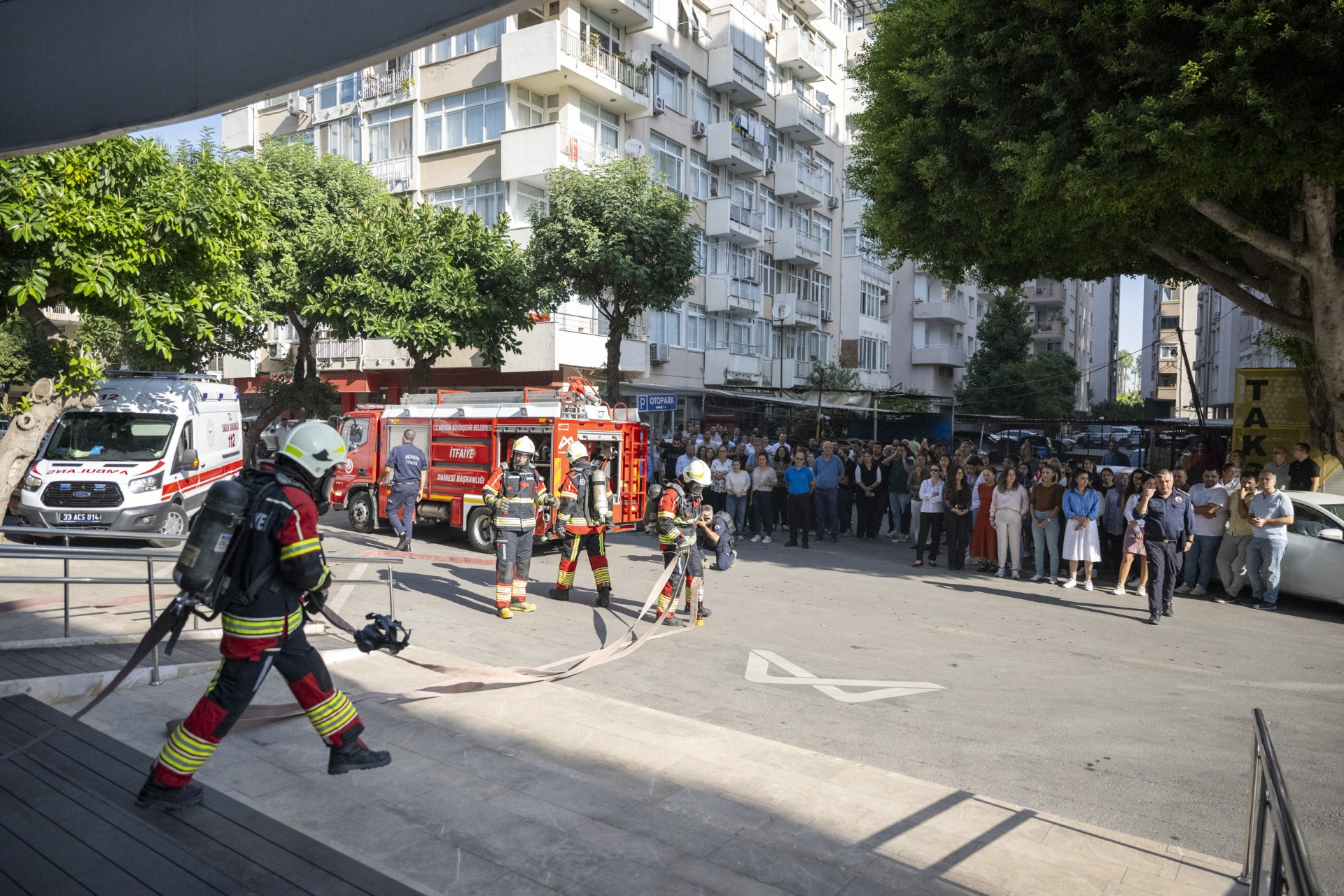 Mersin Büyükşehir Belediyesi Ana Hizmet Binası’nda yangın tatbikatı gerçekleştirildi. Tatbikatta 3,5 dakikada tüm bina boşaltıldı. Tahliye sonrasında birim sorumluları personel yoklamalarını gerçekleştirdi. Olay yerine kısa sürede ulaşan itfaiye ekipleri, binada mahsur kalan bir kişiyi hızla dışarı çıkardı. Büyükşehir Belediyesi İtfaiye Dairesi; afet ve acil durumlara karşı belediye personelinin farkındalığını artırmak ve Mersin’de güvenli bir çalışma ortamı oluşturmak amacıyla eğitim ve tatbikat programlarına devam edecek.