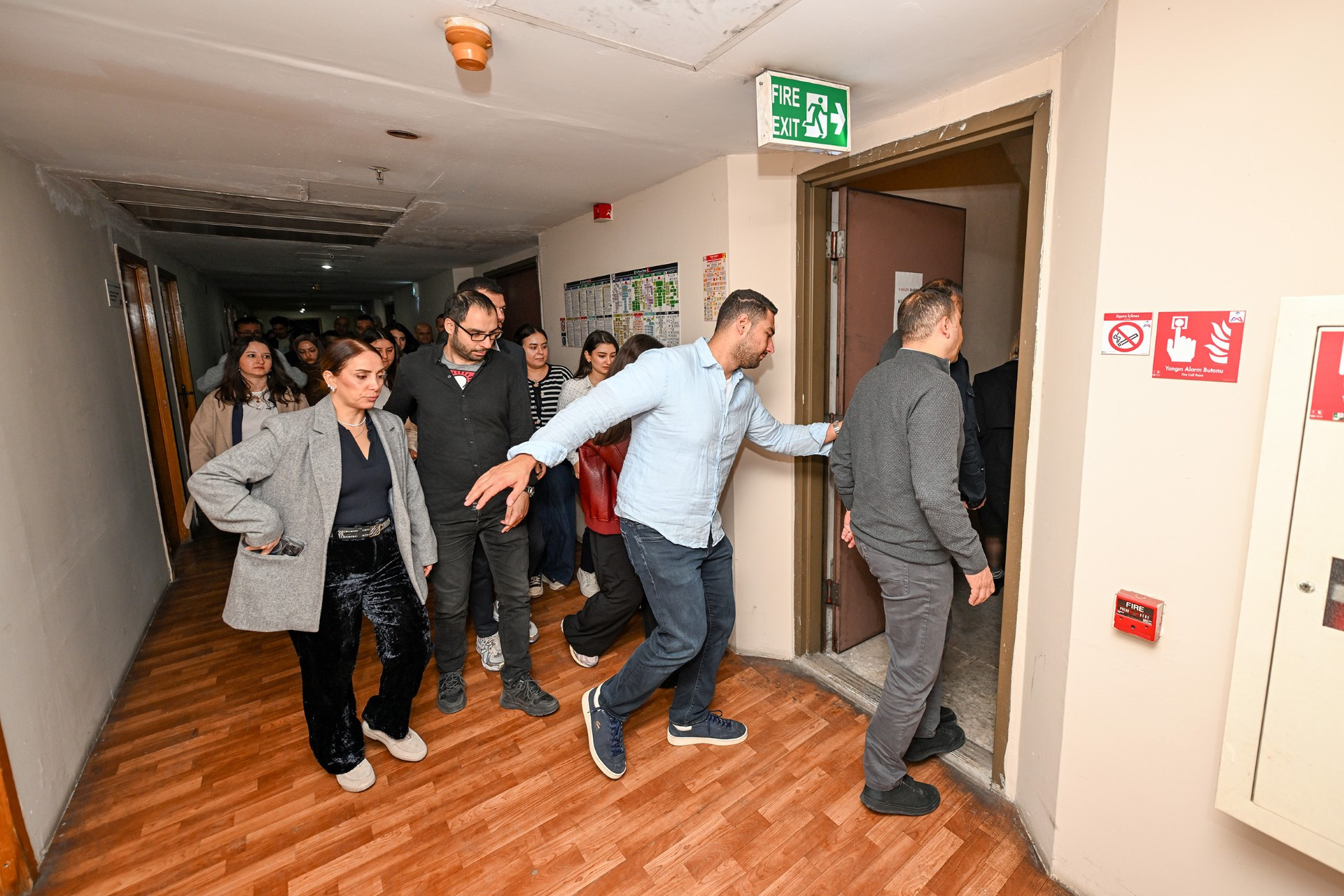 Mersin Büyükşehir Belediyesi’nin Metropol İş Merkezi’nde bulunan birimlerinde görev yapan personeline yönelik, ‘Yangın ve Kurtarma Tatbikatı’ gerçekleştirildi. Olası acil durumlara karşı hazırlıklar kapsamında, tatbikat senaryosuna uygun hareket edildi. Tatbikat senaryosu gereği 4. katta uzatma kablosu kaynaklı çıkan başlangıç aşamasındaki yangın için alarm çalıştırıldı. Sorumlu personelin yönlendirmesiyle acil çıkış kapısı kullanılarak, personelin binadan tahliye işlemi yapıldı ve birim sorumluları personel yoklamasını gerçekleştirdi.