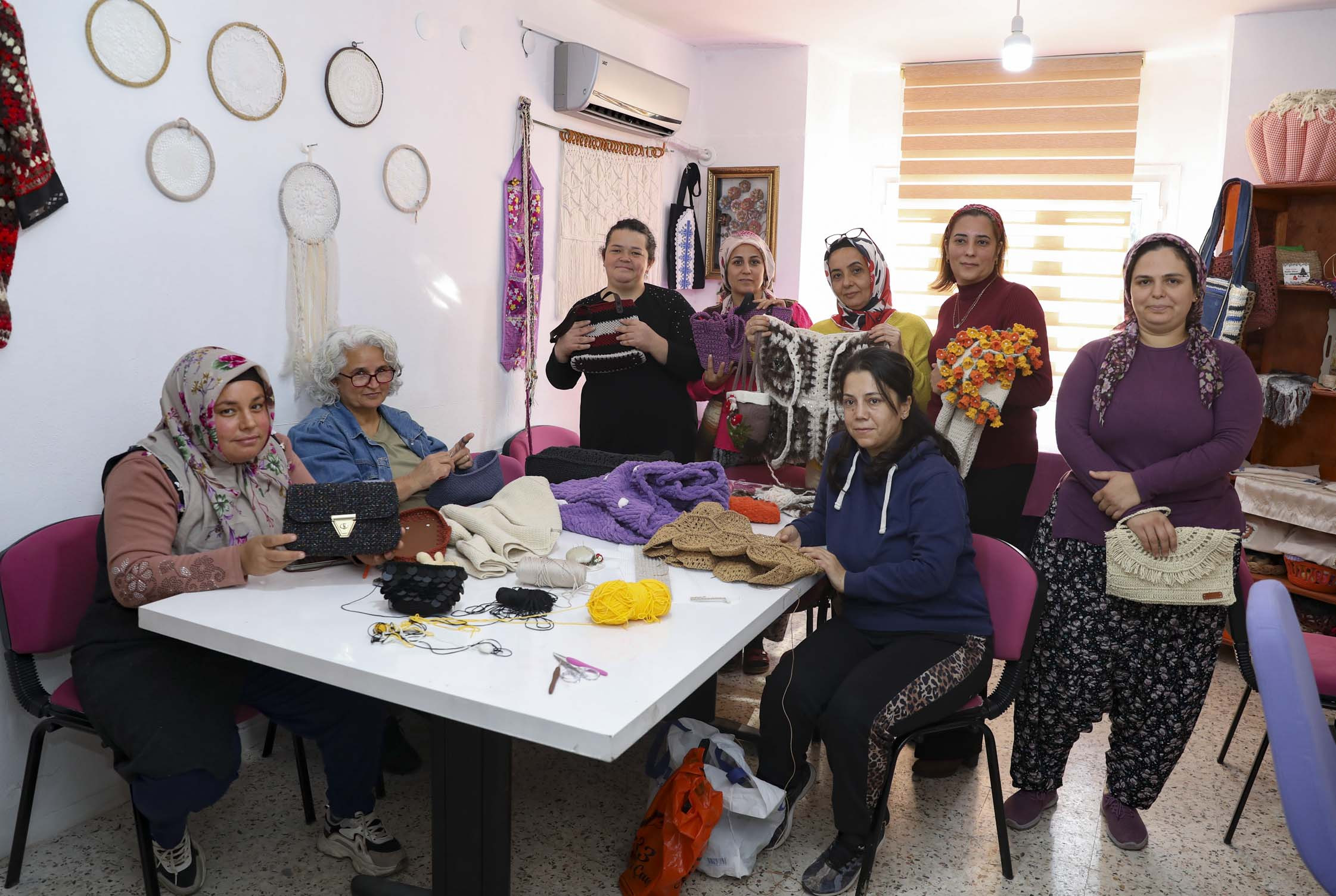 El Sanatları Atölyesi’ne katılan bir başka kursiyer Cennet Ersin, “2 oğlum var. Onları oyun alanına bıraktım. Ben de burada el işlerimi yapıyorum. Ara sıra yaptığım çantaları satıyorum. Bizler için güzel bir imkan. Ağustos ayından beri buradayım. Arkadaşlarla güzel vakit geçiriyor ve yeni arkadaşlar ediniyoruz” dedi.