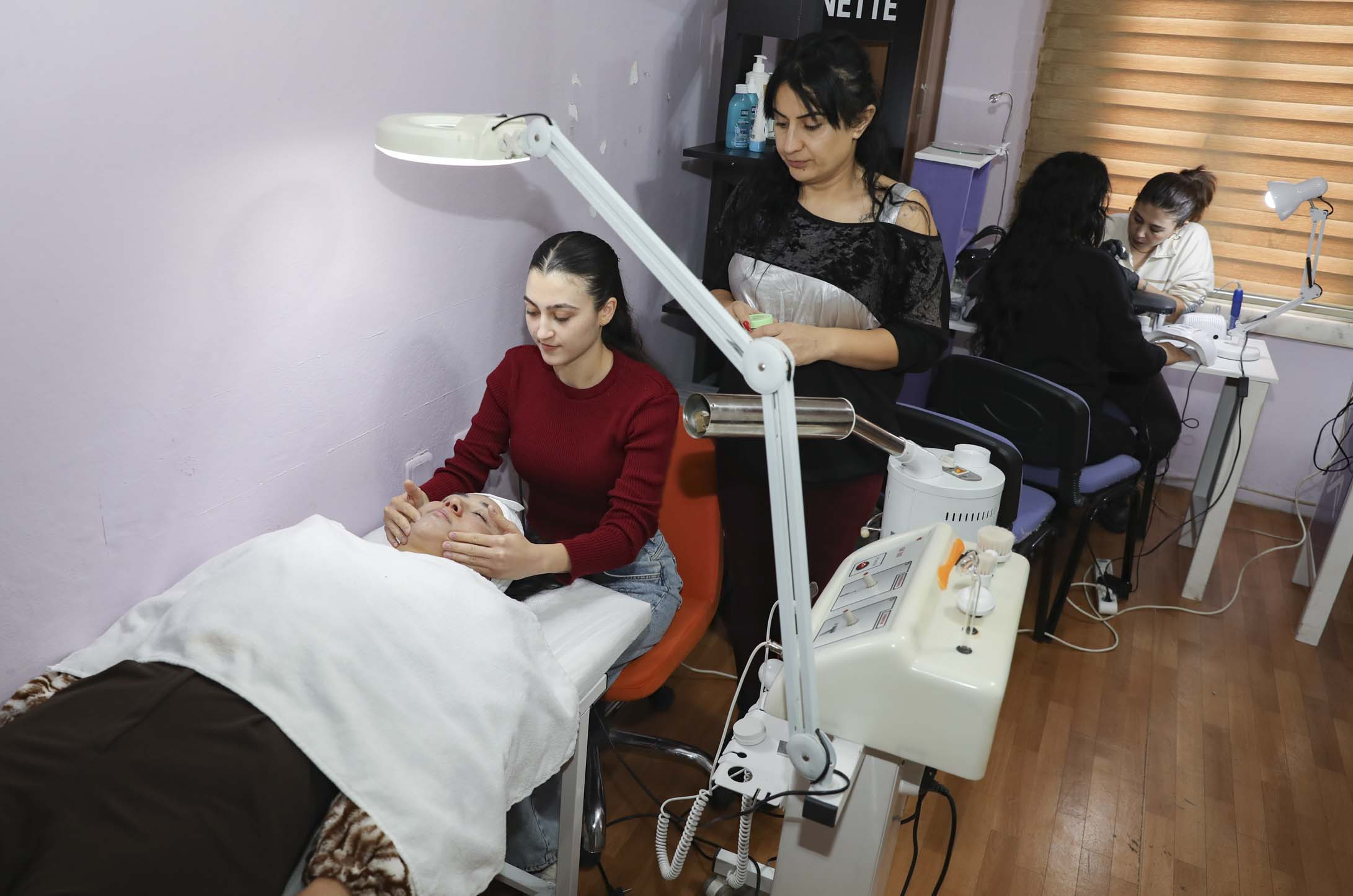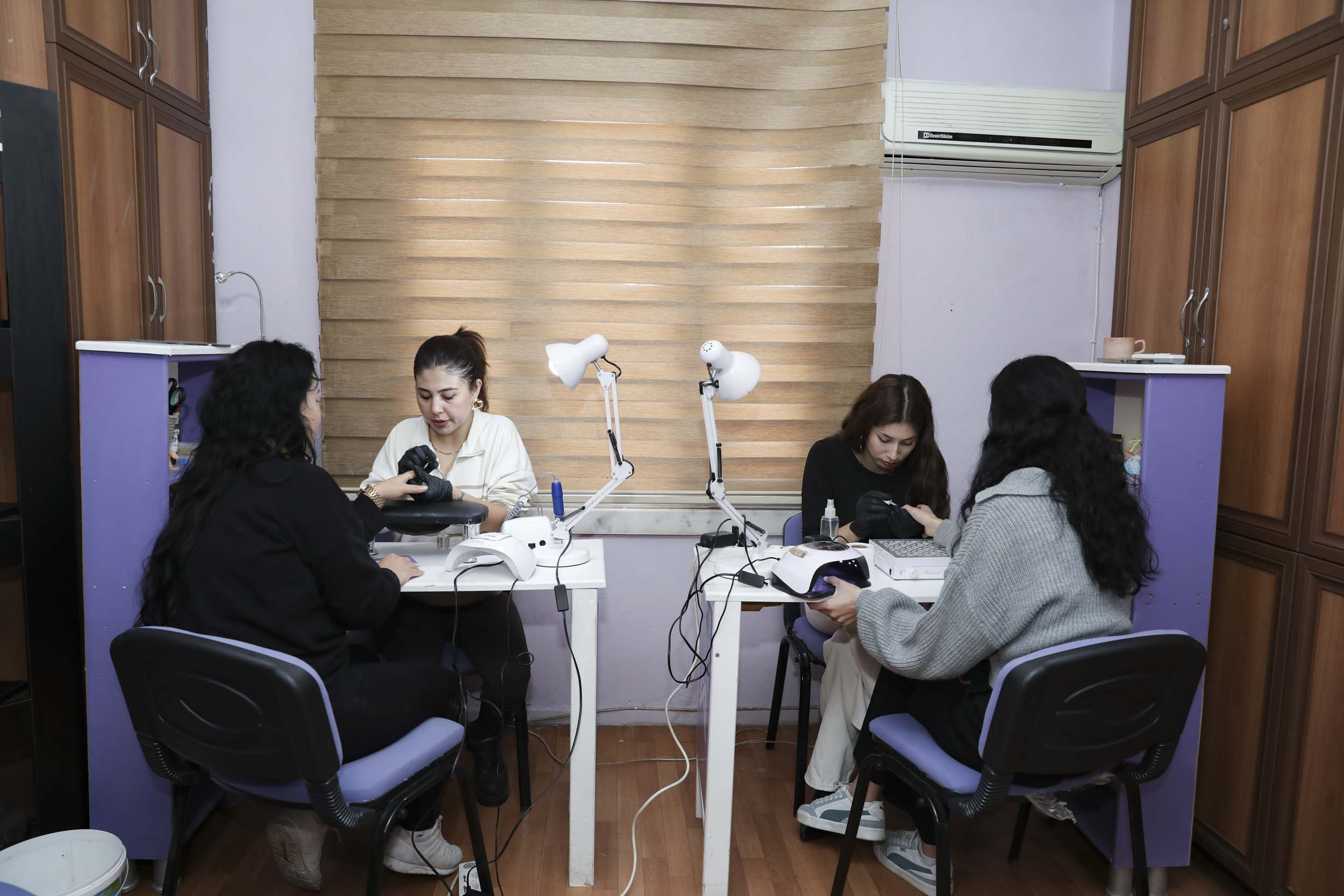 1,5 aydır Tömük Kadın ve Çocuk Atölyesi’ndeki kurslara katıldığını söyleyen Seher Kıbbiye, “Güzellik, bakım, cilt ve saç bakımı üzerine çalışma yapıyoruz. Saç kesiyor, boya yapıyor ve kuaförlük alanında ilerliyoruz. Haftanın 5 günü buradayız. Okuldaki öğrenciler gibi gelip burada yeni bilgiler öğreniyoruz” ifadelerini kullandı.