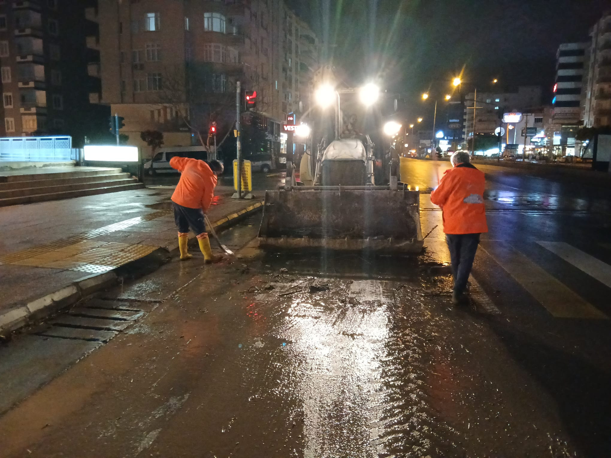 BÜYÜKŞEHİR’DEN KUVVETLİ YAĞIŞ SONRASI TEMİZLİK ÇALIŞMASI