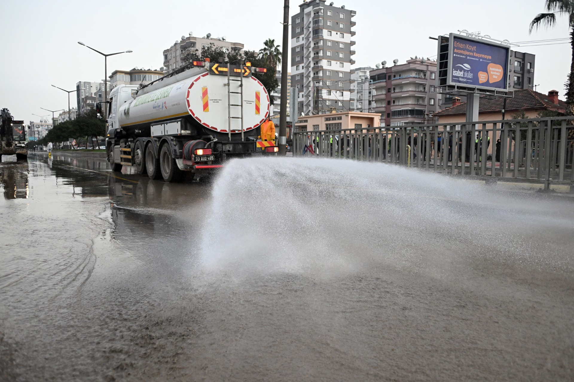 MERSİN BÜYÜKŞEHİR, YOĞUN YAĞIŞIN ARDINDAN TÜM EKİPLERİYLE KENT GENELİNDE TEMİZLİK ÇALIŞMALARINI SÜRDÜRÜYOR