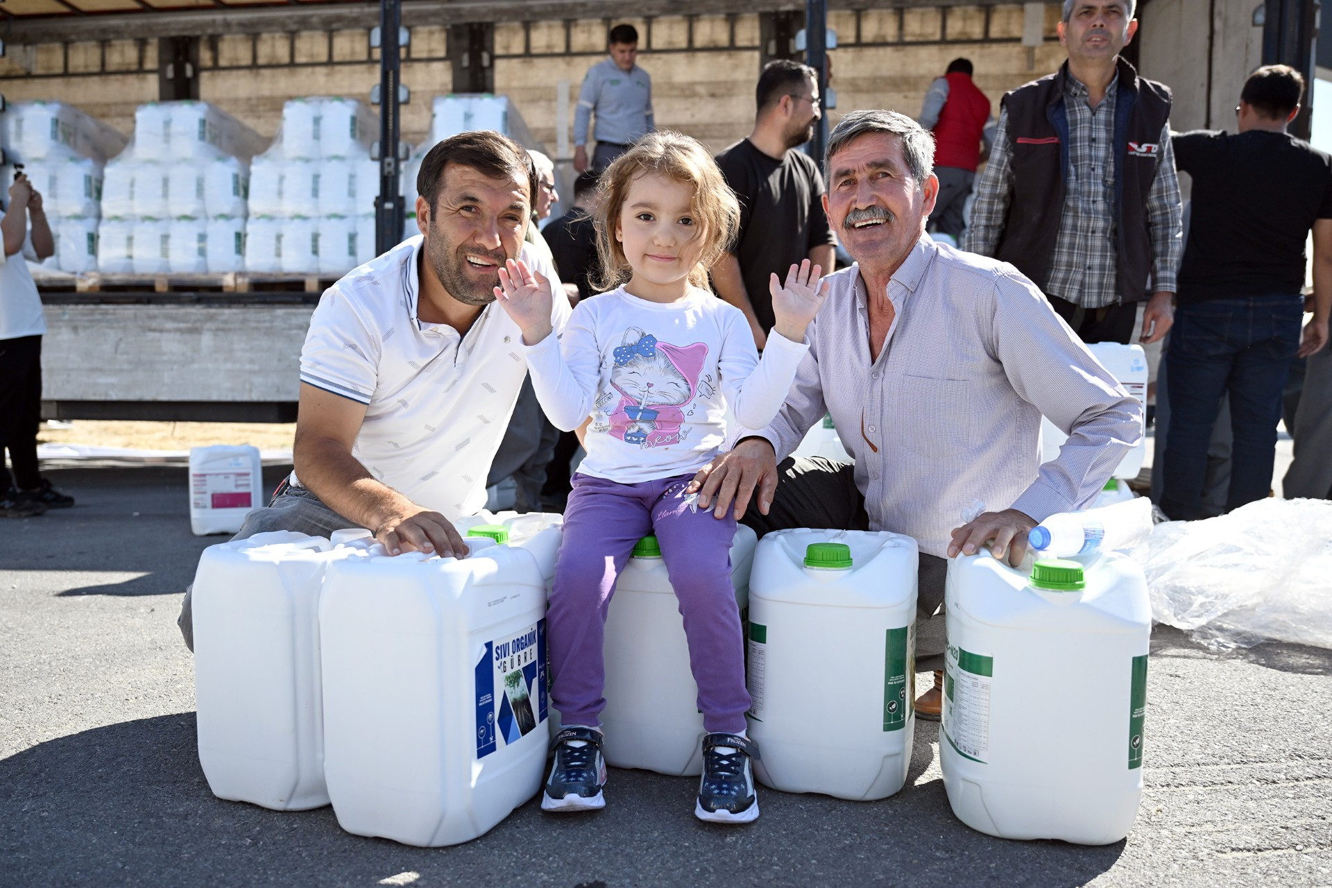 Doğal afetlerden etkilenen küçük ölçekli meyve üreticilerine yönelik proje kapsamında toprak sağlığını iyileştirmek ve ürün kalitesini artırmak hedefiyle yürütülen ‘Sıvı Gübre Desteği Projesi’ kapsamında, her üreticiye 40 litre sıvı azot gübre ve 20 litre organik gübre olmak üzere toplam 60 litre sıvı gübre desteği veriliyor. Gerçekleşen törenle, Toroslar ilçesinden 1300 üreticiye toplam 78 bin litre sıvı gübre dağıtıldı. Mersin genelinde ise 6 bin 500 üreticiye 390 bin litre sıvı gübre desteği sağlanıyor.