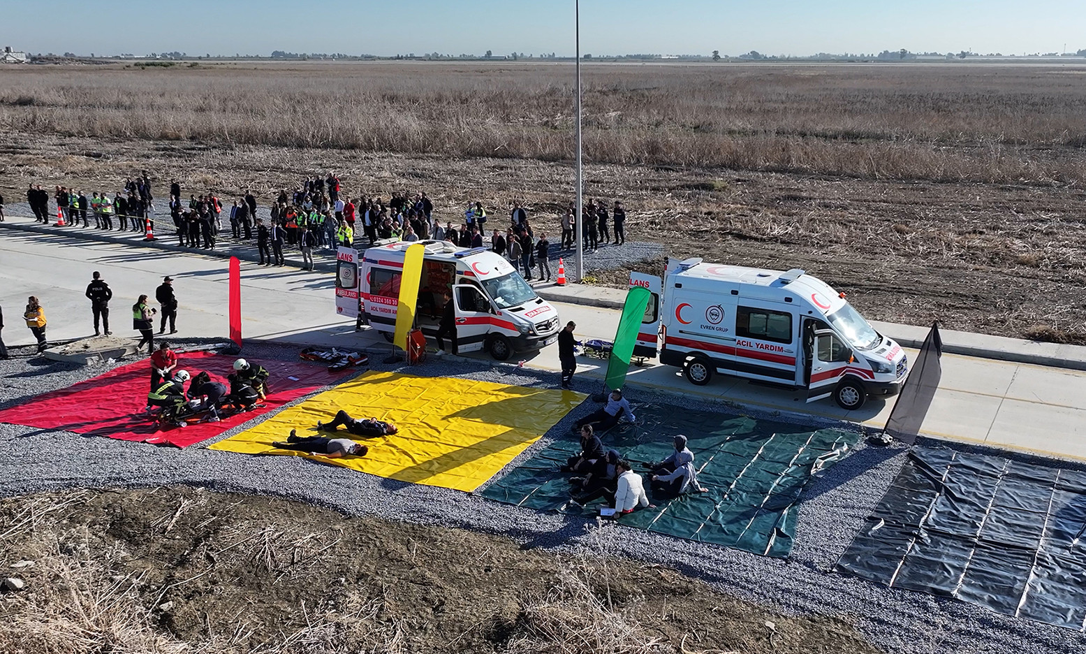 Çukurova Uluslararası Havalimanı’nda, Uluslararası Sivil Havacılık Örgütü (ICAO) standartları gereğince en geç iki yılda bir düzenlenmesi zorunlu olan geniş katılımlı acil durum tatbikatı başarıyla gerçekleştirildi. Havalimanı emniyet ve operasyonel devamlılığının sağlanması amacıyla düzenlenen tatbikatta, olası hava aracı kazalarında uygulanacak acil durum planları test edildi.