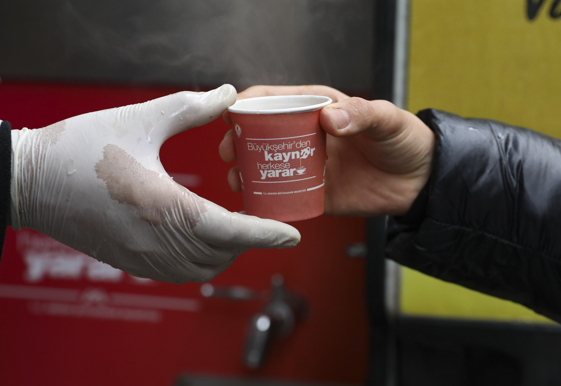 Akdeniz ilçesi esnafından Hasan Pişkin, Büyükşehir’in kaynar ikramını severek aldığını belirterek, “Çok güzel. Soğukta herkes alıyor, içiyor. İçimizi ısıtıyor. Yeni yılda güzel oldu. Ağzımız tatlandı” diye konuştu.