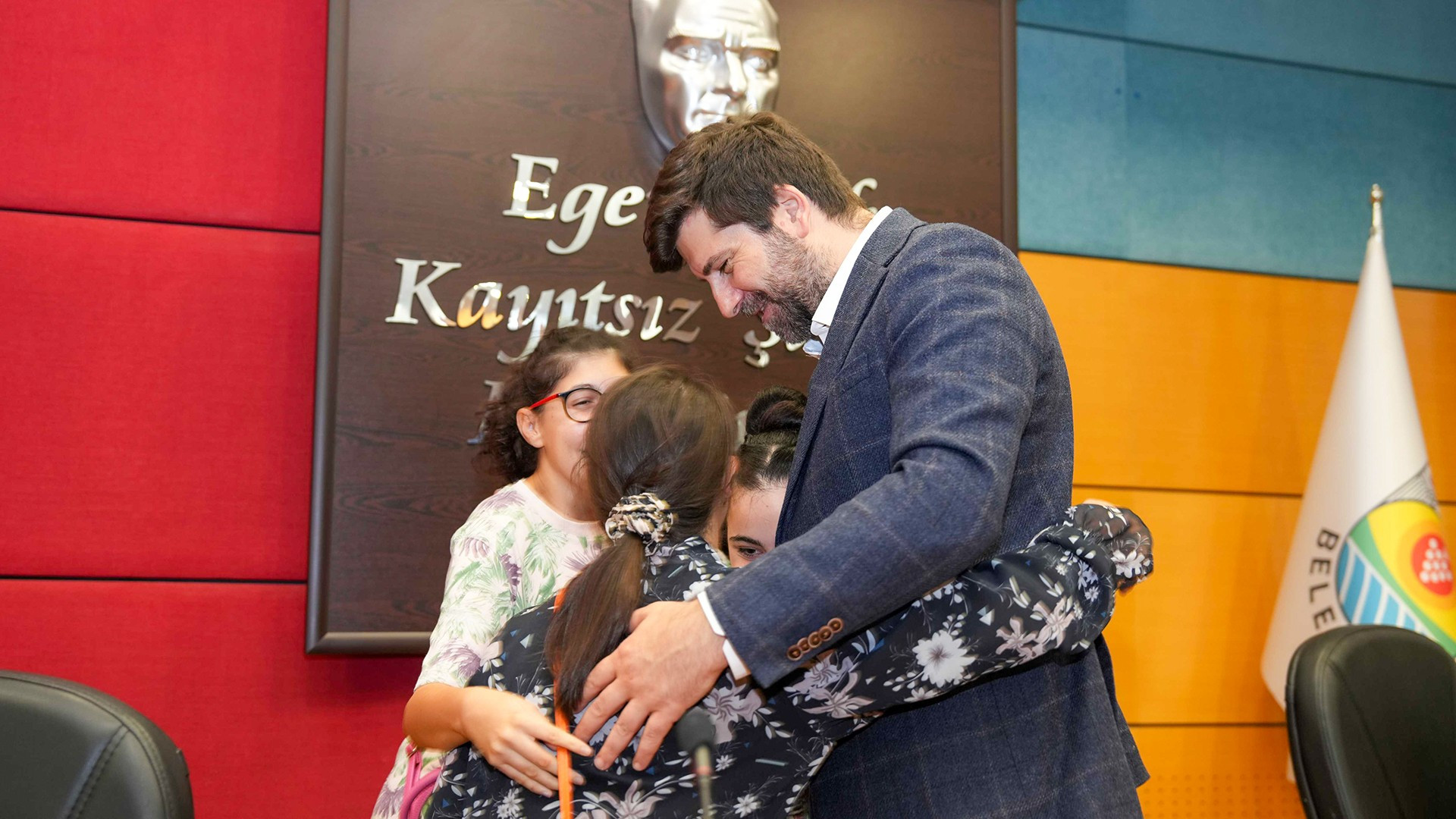 Başkan Boltaç, meclis koltuklarında oturan çocuklarla tek tek ilgilenerek onların düşüncelerini, sorularını ve hayallerini dinledi.