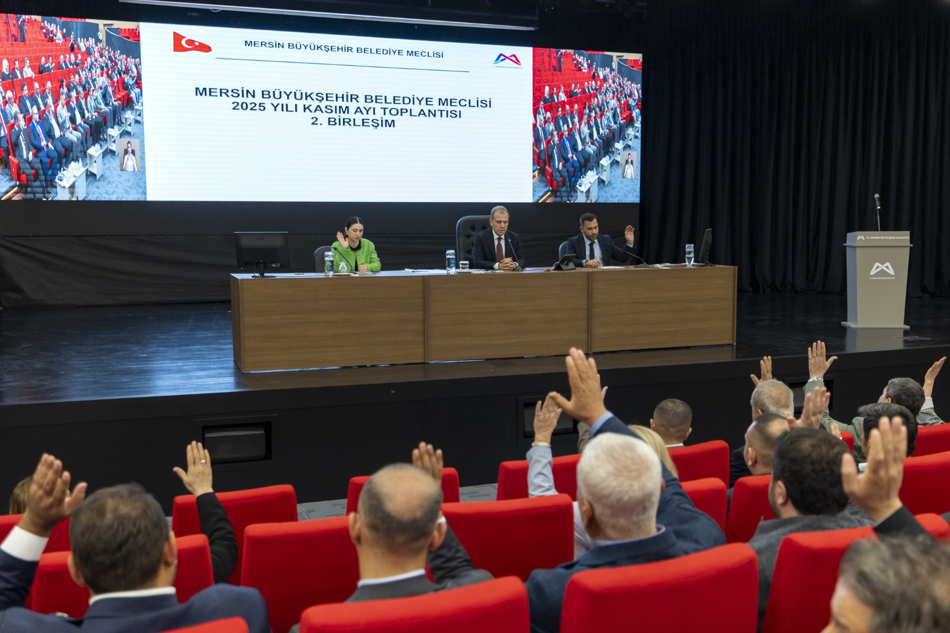 Mersin Büyükşehir Belediye Meclisi’nin 2025 Yılı Kasım Ayı Olağan Toplantısı 2. Birleşimi, Türkiye Belediyeler Birliği (TBB) Başkan Vekili ve Mersin Büyükşehir Belediye Başkanı Vahap Seçer başkanlığında gerçekleştirildi. Mersin Büyükşehir Belediyesi Kongre ve Sergi Sarayı’nda bulunan Etkinlik ve Nikah Salonu’nda düzenlenen toplantıda, Komisyonlara Havale Edilen 18, Birimlerden Gelen 8 ve Gündem Dışı 1 olmak üzere, toplam 27 madde görüşüldü.