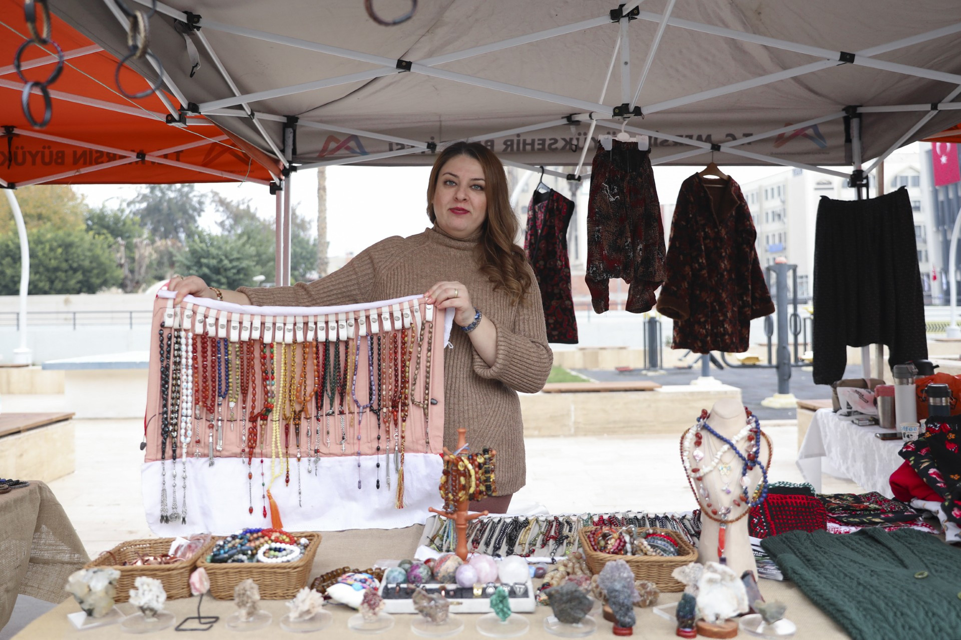 Üretici kadın stantlarında el emeği takılarını satan Sinem Arslan da hemşire olduğunu, ancak atanamadığı için bu alanda üretime yöneldiğini söyledi. Arslan, “Doğal taşlardan tespih, bileklik ve kolyeler yapıyorum. Belediyemizin sunduğu bu imkân sayesinde, haftada bir gün de olsa eve katkı sağlayabiliyorum” ifadelerini kullandı.