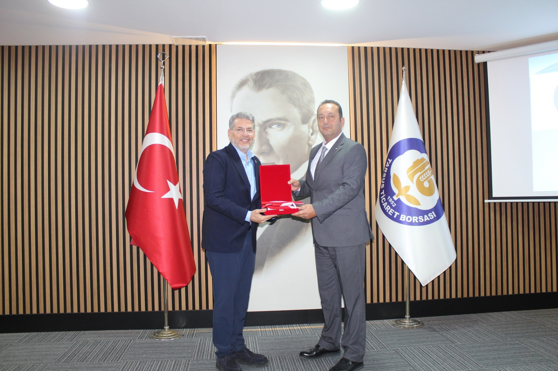 Tarsus Ticaret Borsası Yönetim Kurulu Başkanı Mustafa Teke, “Mersin MHP Milletvekili Levent Uysal ve beraberindeki heyetin ziyaretinden duyduğu memnuniyeti dile getirerek Tarsus Ticaret Borsası’nın Tarsus’un lokomotif kurumlarından bir tanesidir. Soğuk hava deposu Pazar yeri, lisanslı depo hizmetleri ve duyusal analiz laboratuvarı ile üyelerimize hizmet veriyoruz. Borsa olarak da Tarsus’a kültürel ve sosyal anlamda destek vermeye çalışıyoruz. Çünkü bizim ortak paydamız Tarsus.”