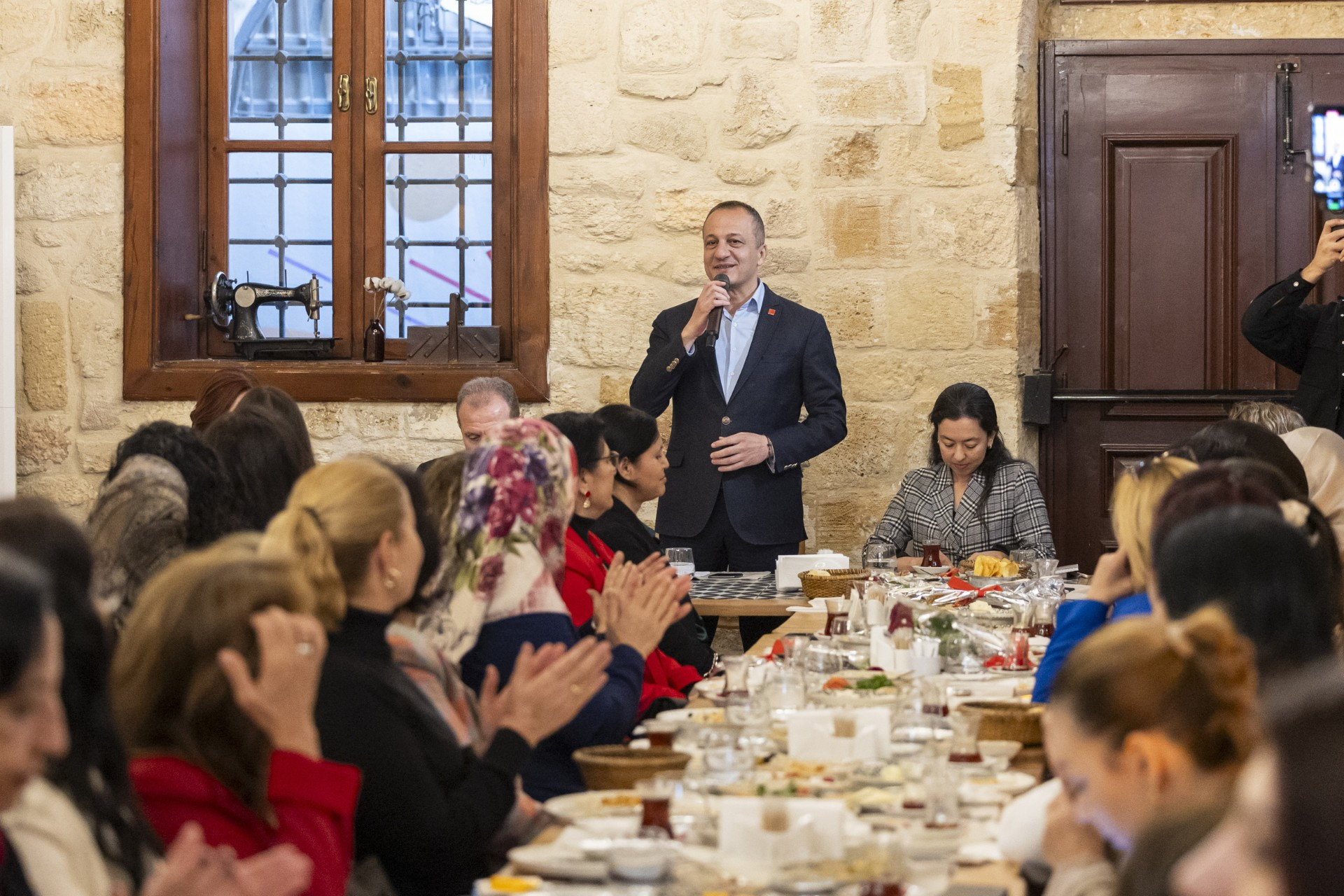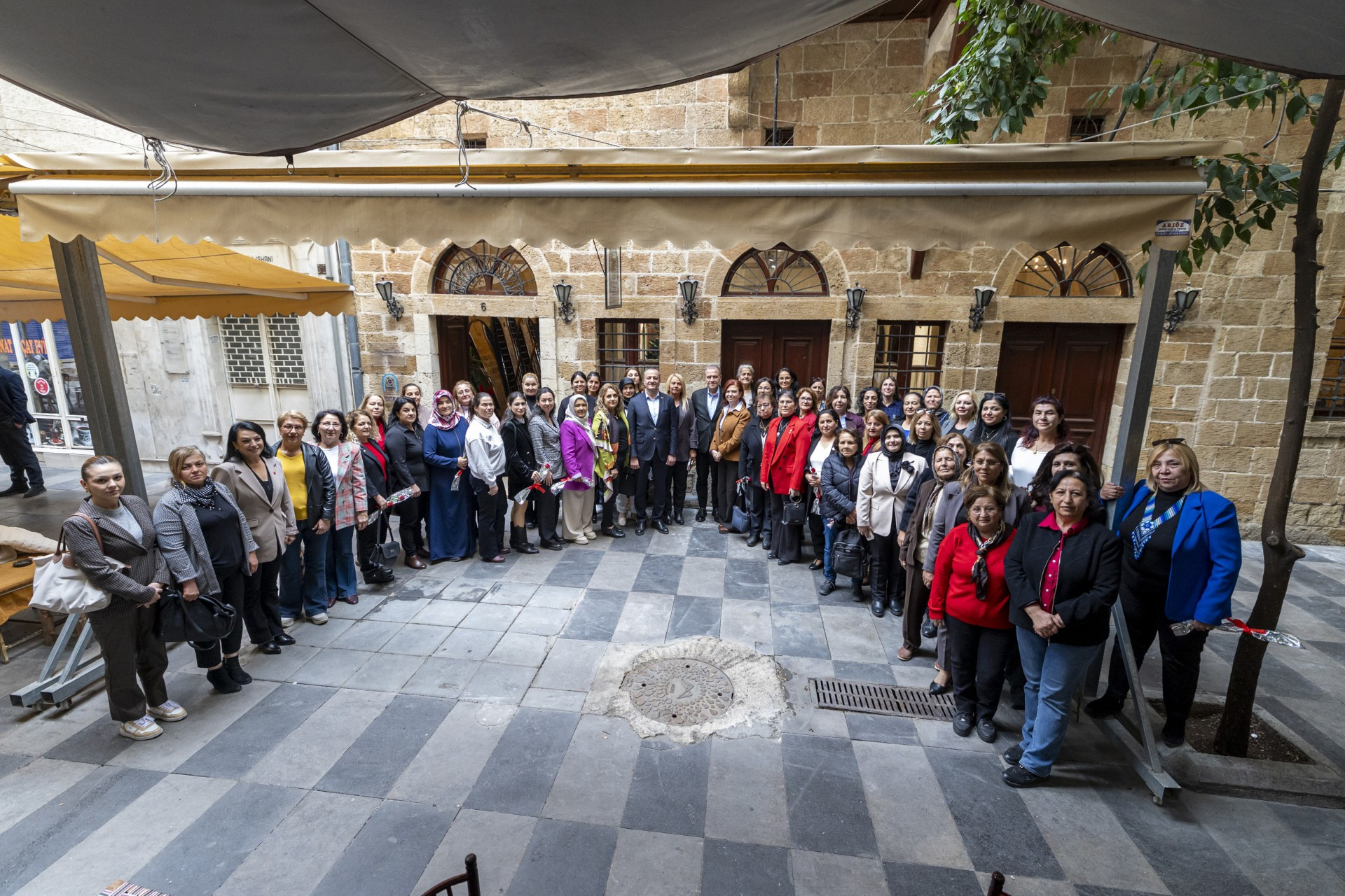 Eski Gülnar Oteli Gastronomi ve Yöresel Ürün Konağı’nda düzenlenen programda TBB Başkan Vekili ve Mersin Büyükşehir Belediye Başkanı Vahap Seçer ile Mersinden Kadın Kooperatifi Başkanı Meral Seçer’in yanı sıra; CHP Mersin İl Başkanı Koral Ömür, CHP Mersin İl Kadın Kolları Başkanı Gülşah Yıldırım Genç, il kadın yöneticileri, ilçe kadın kolları başkanları ve kadın muhtarlar yer aldı.