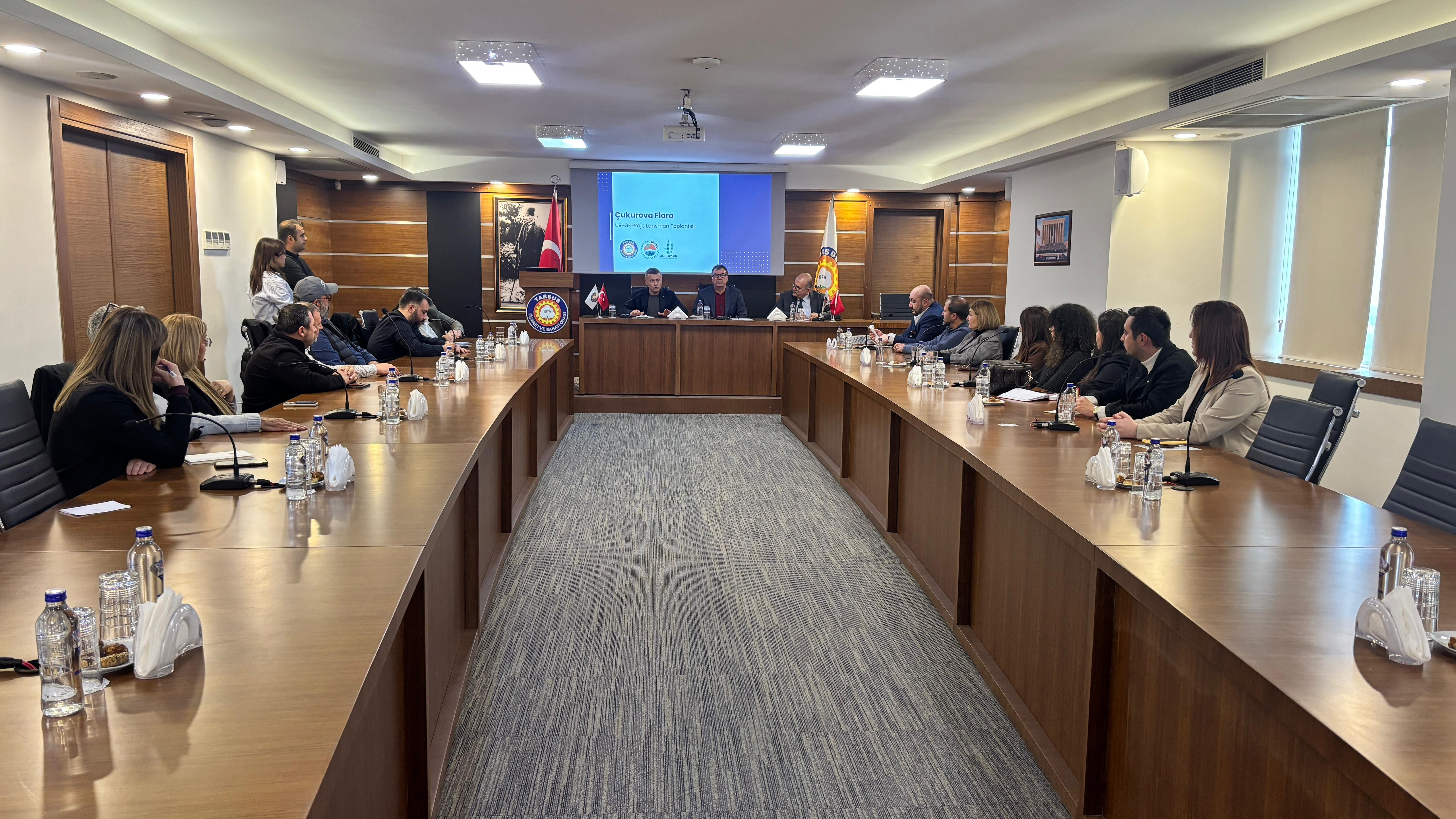 Mersin Ticaret ve Sanayi Odası (MTSO), Tarsus Ticaret ve Sanayi Odası ile Mersin Agropark Tarım ve Gıda İhtisas Teknoloji Geliştirme Bölgesi iş birliğinde yürütülecek Süs Bitkiciliği UR-GE Projesi “Çukurova Flora” için ilk tanıtım ve istişare toplantısı Tarsus TSO ev sahipliğinde gerçekleştirildi. MTSO Yönetim Kurulu Başkanı Hakan Sefa Çakır, Tarsus TSO Yönetim Kurulu Başkanı Ruhi Koçak ile Agropark Genel Müdürü Murat Hocagil’in katılımıyla düzenlenen toplantıda proje detayları, hedefler ve yol haritası katılımcılarla paylaşıldı.