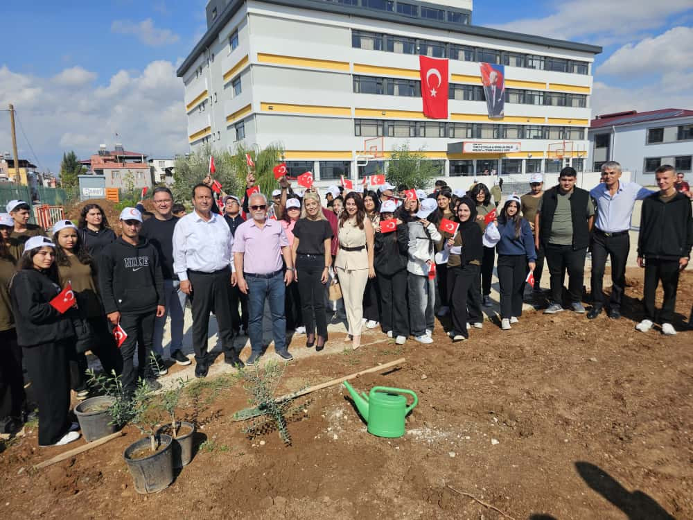 Tarsus Ticaret Borsası Başkanı Mustafa Teke, Okul Müdürü Nurettin Anbaroğlu, öğretmenler ve öğrenciler birlikte Tarsus Sarıulak Zeytin fidanını toprakla buluşturdu.