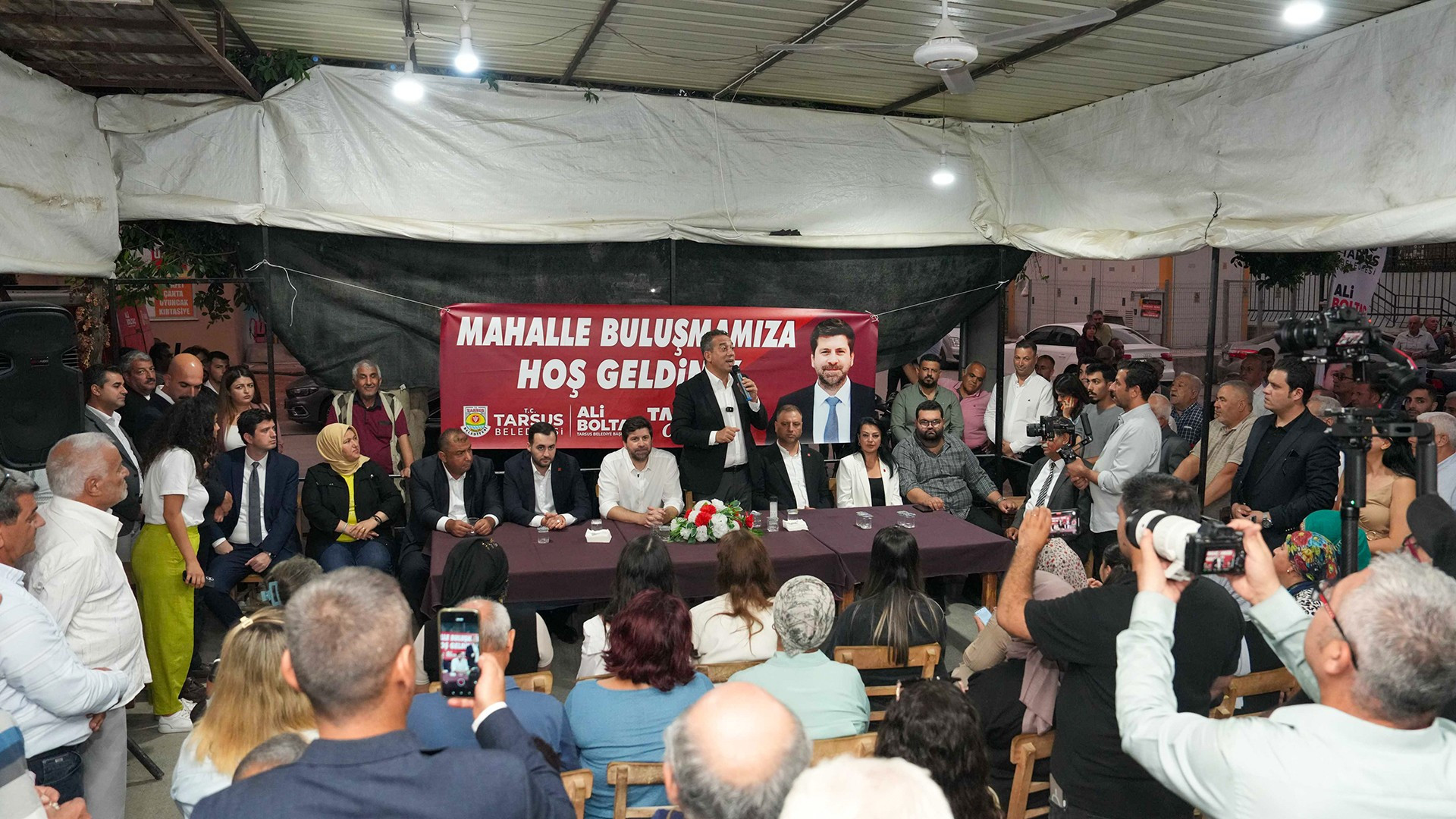Buluşmada konuşan Tarsus Belediye Başkanı Ali Boltaç, halkla temasın ve doğrudan iletişimin önemine dikkat çekti. Çözüm odaklı belediyecilik anlayışını sürdürmeye kararlı olduklarını belirten Boltaç,“Sıkmadığınız el, çalmadığınız kapı, gitmediğiniz yer sizin değildir. Ayrışmadan, bölünmeden, omuz omuza çalışmanın vaktidir artık.” ifadelerini kullandı.
