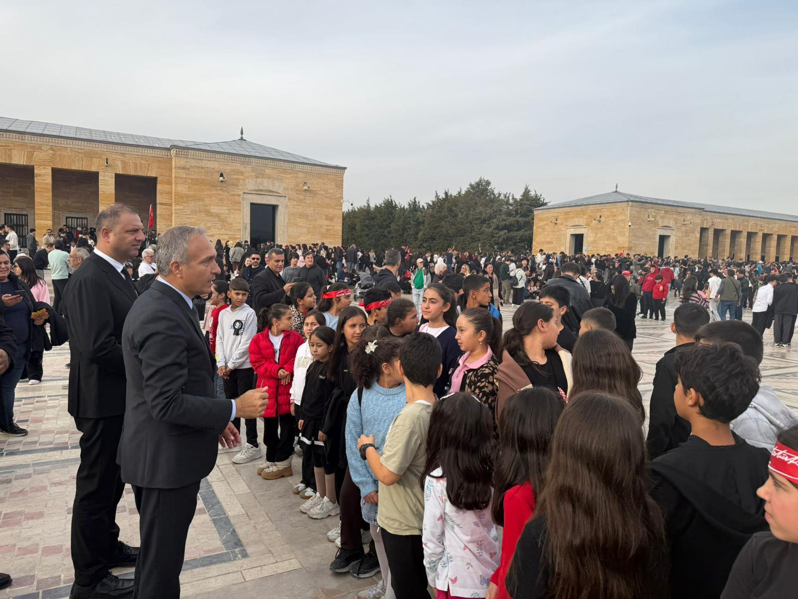 Minik kalpler, ellerinde kırmızı karanfillerle Atatürk’e sevgilerini sunarken, yüreklerinde heyecan ve gözlerinde gururla Cumhuriyet’in kurucusuna minnet duygularını dile getirdiler.