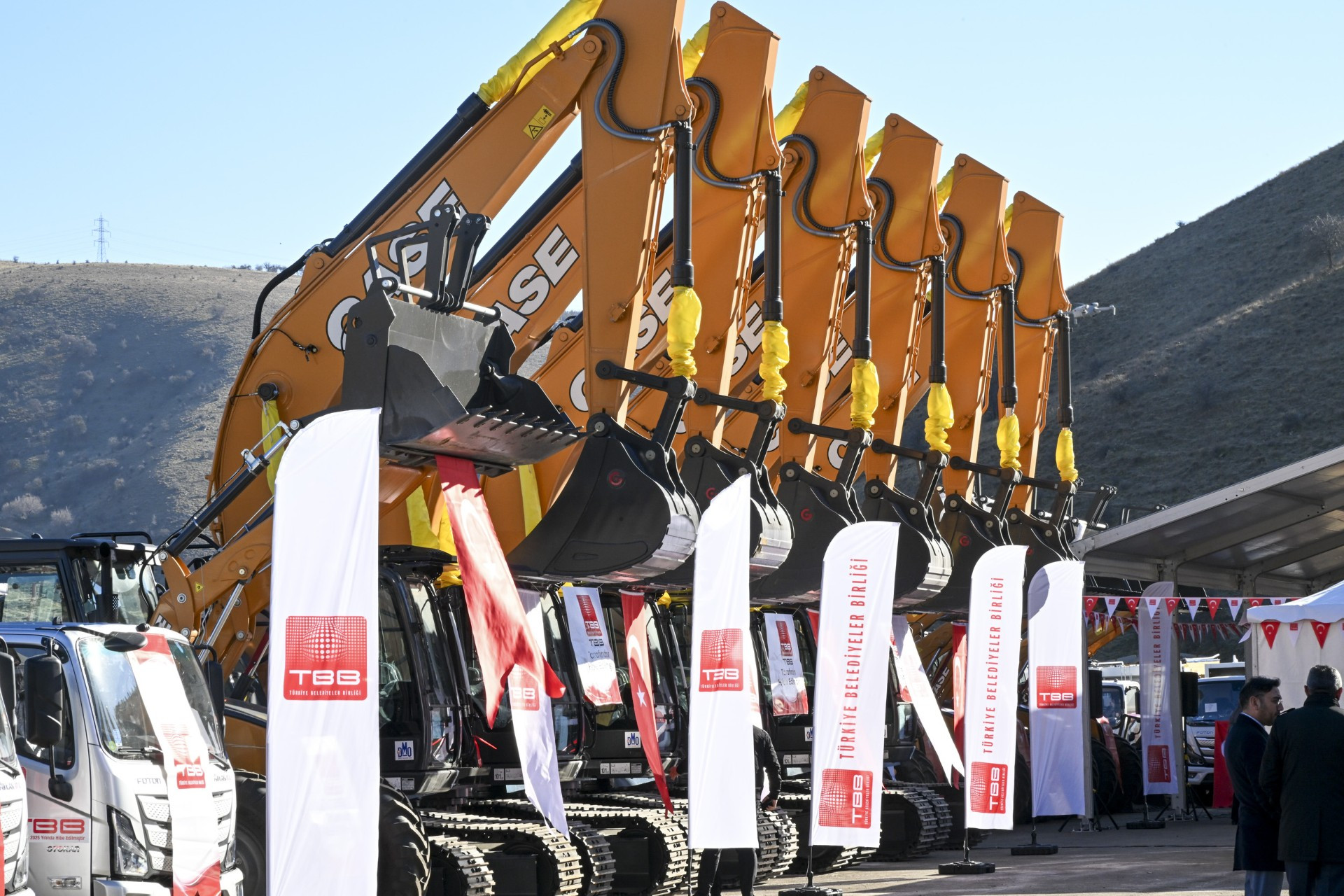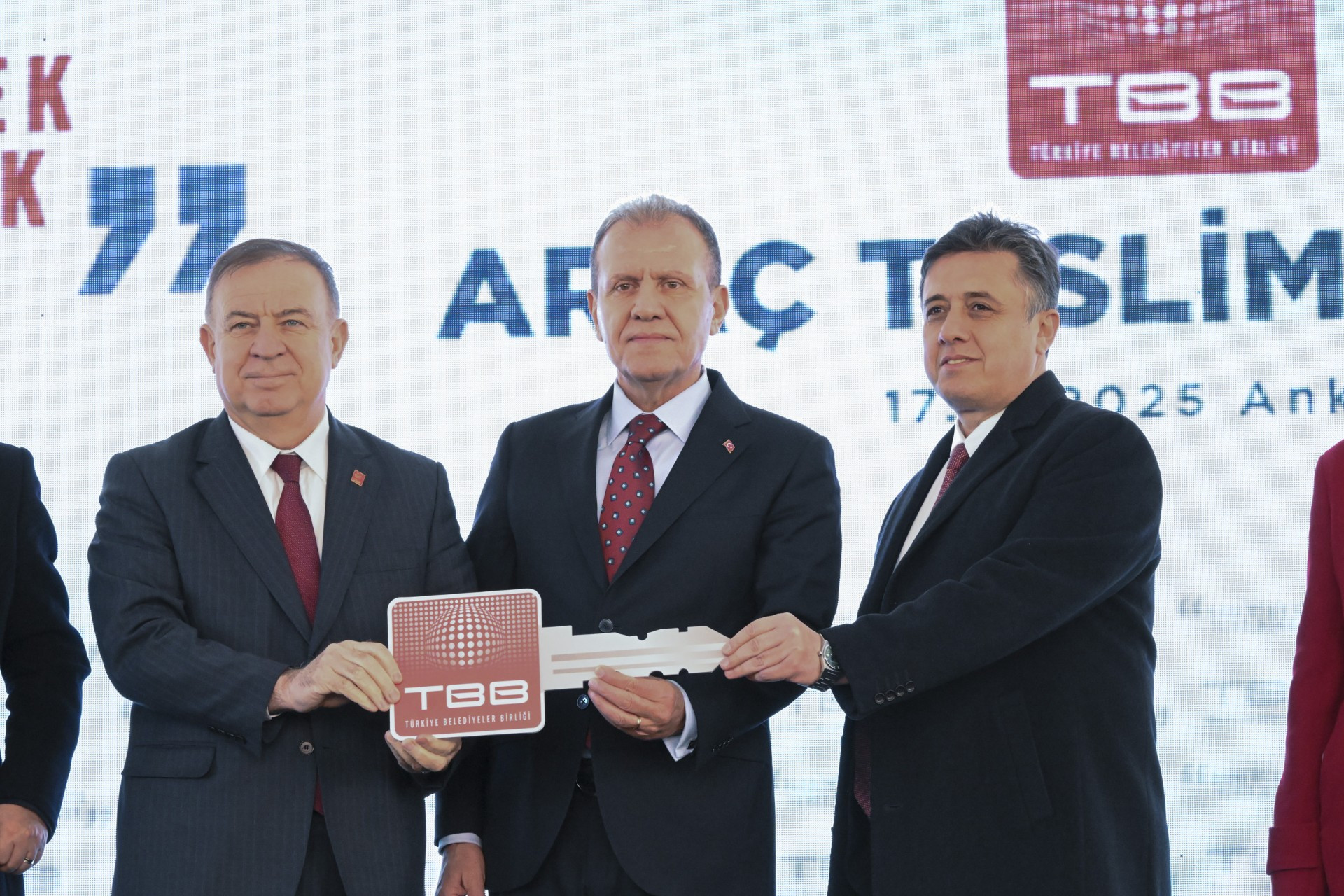 TBB Encümen Toplantısı’nın ardından gerçekleştirilen tören ile belediyelere toplam 59 yeni araç teslim edildi. Bu araçlar arasında; 15 ekskavatör, 14 çöp kamyonu, 11 kazıcı yükleyici, 7 damperli kamyon, 6 yol süpürme aracı, 2 cenaze aracı, 1 greyder, 1 itfaiye aracı, 1 otobüs ve 1 arazöz yer aldı. Anahtarları teslim edilen 59 yeni araçla birlikte belediyelere TBB tarafından Haziran 2024 tarihinden bugüne kadar toplam 523 araç hibe desteği sağlanmış oldu. Teslimi yapılan araçlar sayesinde, belediyelerin hizmet kapasitesini artırarak vatandaşlara daha kaliteli hizmet sunmalarına katkı sağlamak hedefleniyor.