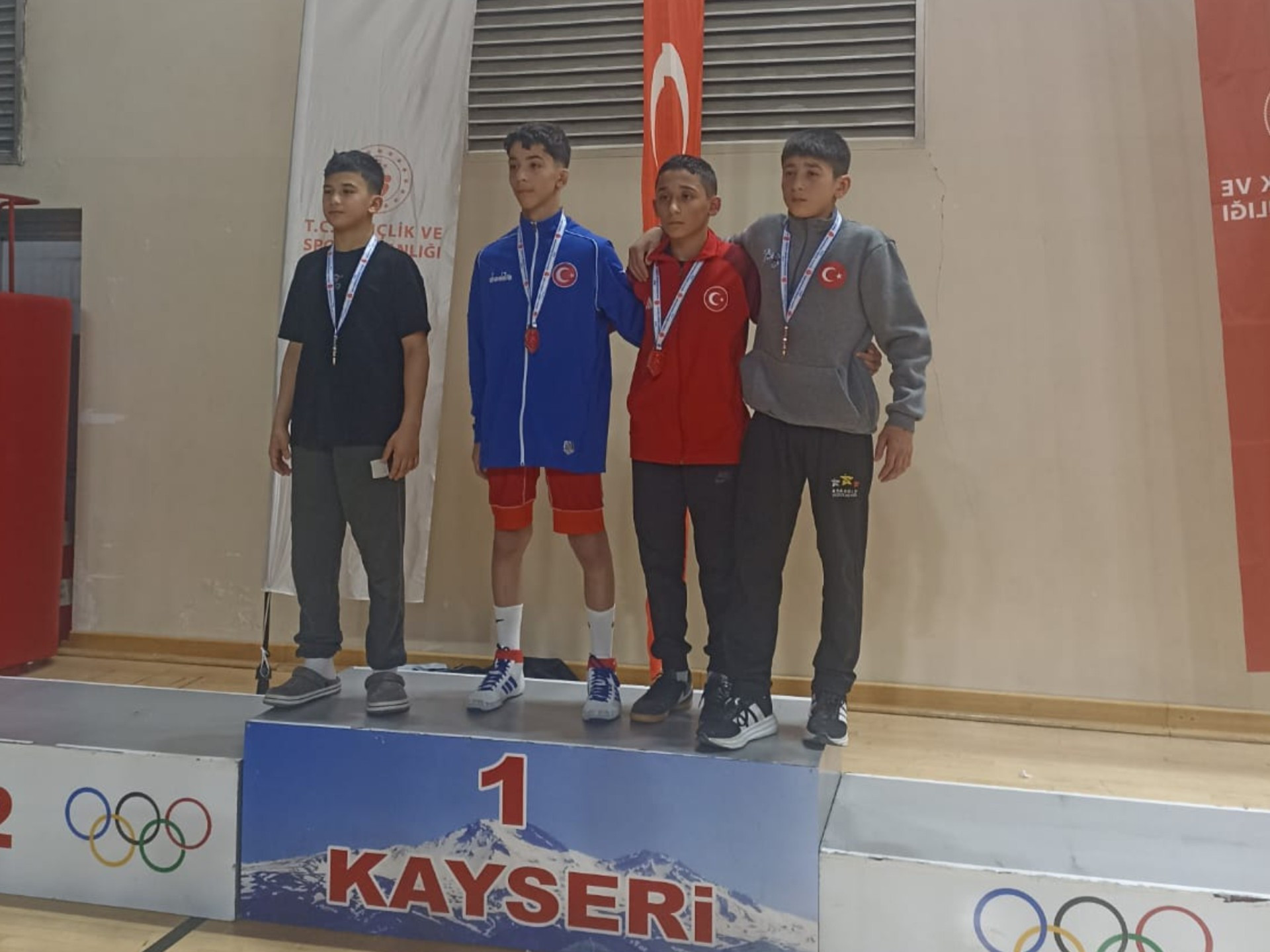 Kayseri’de 27-29 Mart 2026 tarihleri arasında düzenlenen U15 Gruplar Güreş Türkiye Şampiyonası’nda 41 kilogramda Mustafa Turgut, Türkiye üçüncüsü olarak kürsüye çıktı.