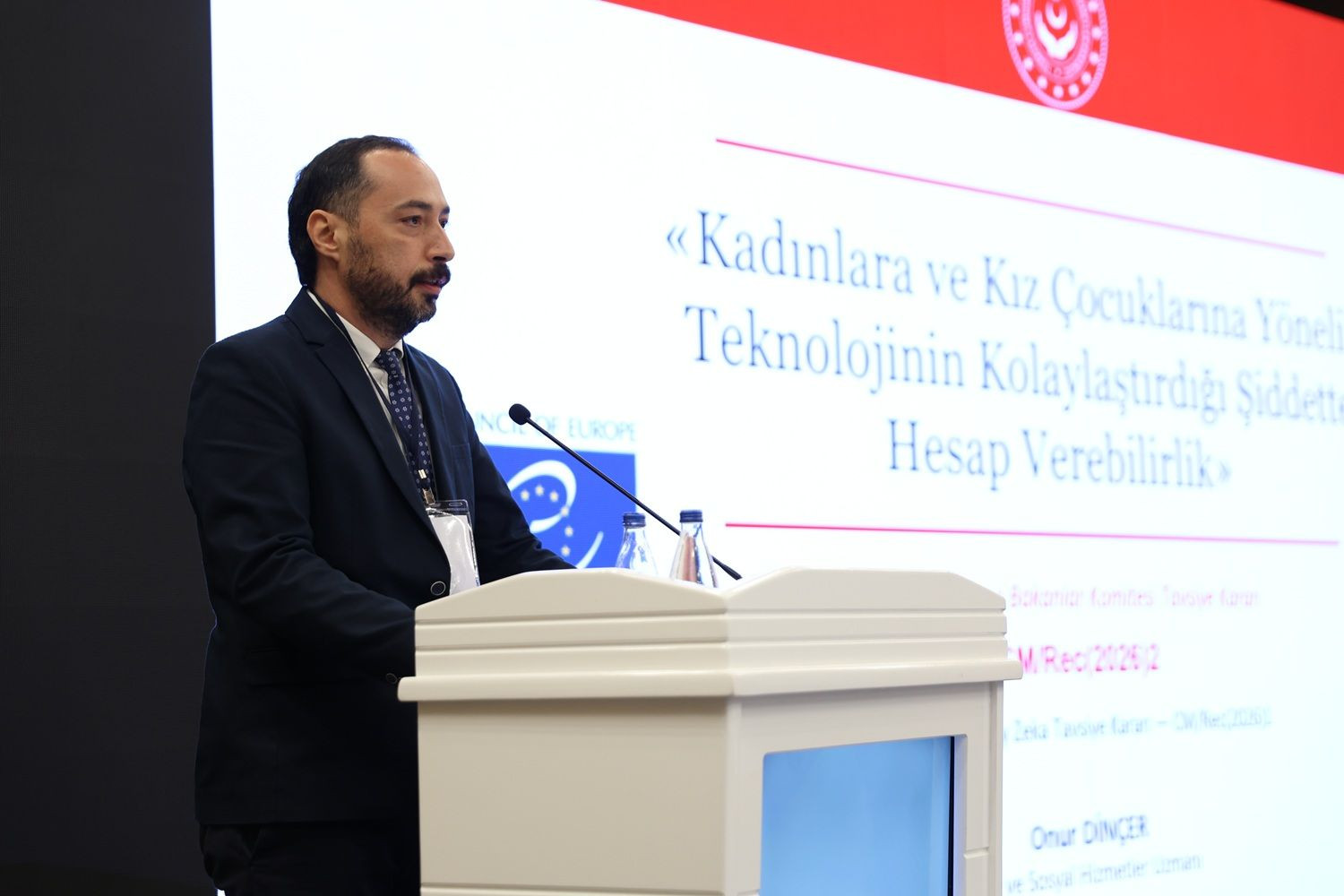 Toplantının ilk oturumunda, Aile ve Sosyal Hizmetler Bakanlığı Uzmanı Onur Dinçer, “Eşitlik ve Yapay Zekâ hakkında Tavsiye Kararı” ve “Teknoloji Aracılığıyla Kadınlara ve Kız Çocuklarına Yönelik Şiddet Konusunda Hesap Verebilirliğe İlişkin Tavsiye Kararı”’nı sundu.