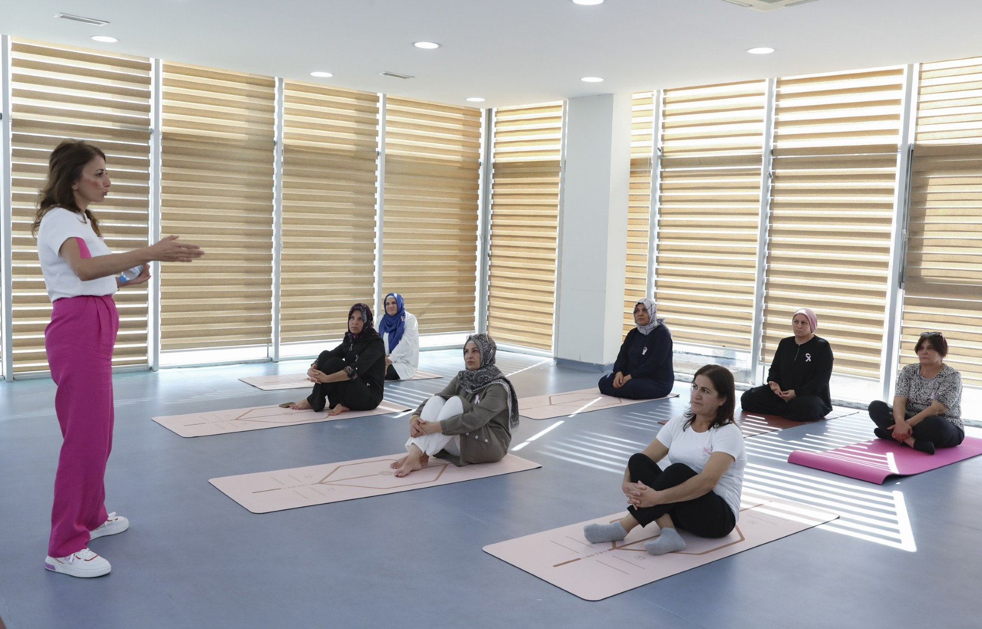 BÜYÜKŞEHİR, KADINLARA MEME KANSERİ FARKINDALIK EĞİTİMİ VERDİ, MEME KANSERİ FARKINDALIK ETKİNLİĞİNDE KADINLAR YOGA YAPTI