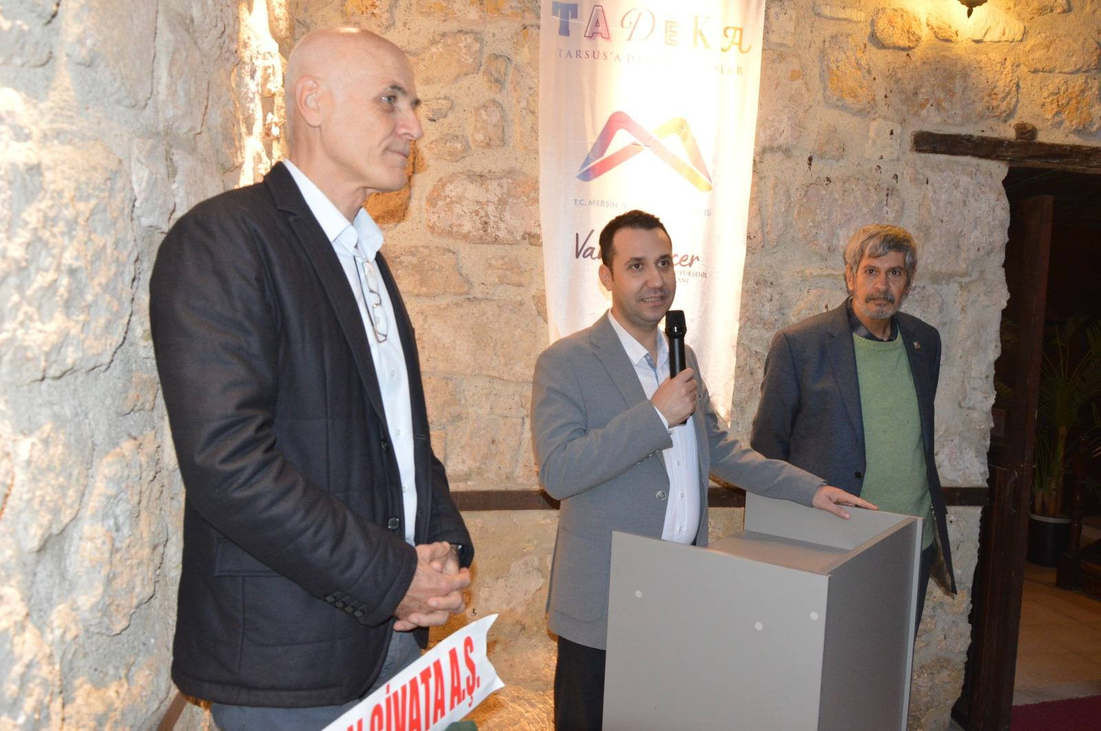Aratos Felsefe Dergisi ve Tadeka iş birliğiyle hazırlanan serginin açılış konuşmasını yapan Dr. Ali Cerrahoğlu, Tadeka kurullarında görev alan gazeteci, yazar ve tarihçi yönüyle bilinen Uğur Pişmanlık'ın pek çok değerli çalışmalar yaptığını belirterek, açacakları "Tarsus Objeleri" sergisinin kent belleği açısından oldukça değerli objeler içerdiğini söyleyerek Pişmanlık'ı kutladı.