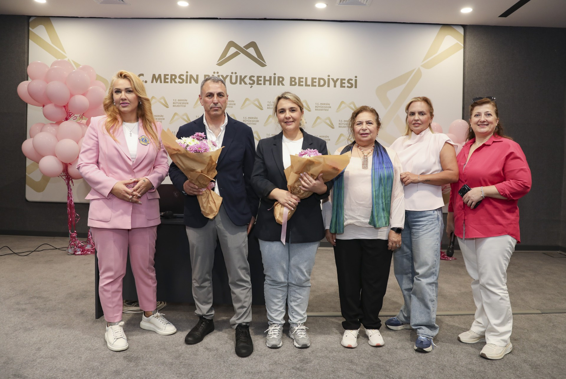 Mersin Büyükşehir Belediyesi’nde görev yapan Kadın Daire Başkanlarının da katıldığı ve Büyükşehir personeline yönelik düzenlenen farkındalık etkinliğinde; Kadın Doğrum ve Hastalıkları Uzman Dr. Aslı Bilekdemir ile Kadın Doğrum ve Hastalıkları Uzman Opr. Dr. Erdal Özmen sunum yaptı. Meme kanserine karşı alınacak önlemler, teşhis, risk faktörleri ve erken teşhisin önemi katılımcılara anlatıldı. Sağlık yaşam alışkanlıklarının hastalığı önlemedeki en etkili yöntem olduğunu belirten doktorlar, erken teşhis için elle muayenenin önemine dikkat çekti.