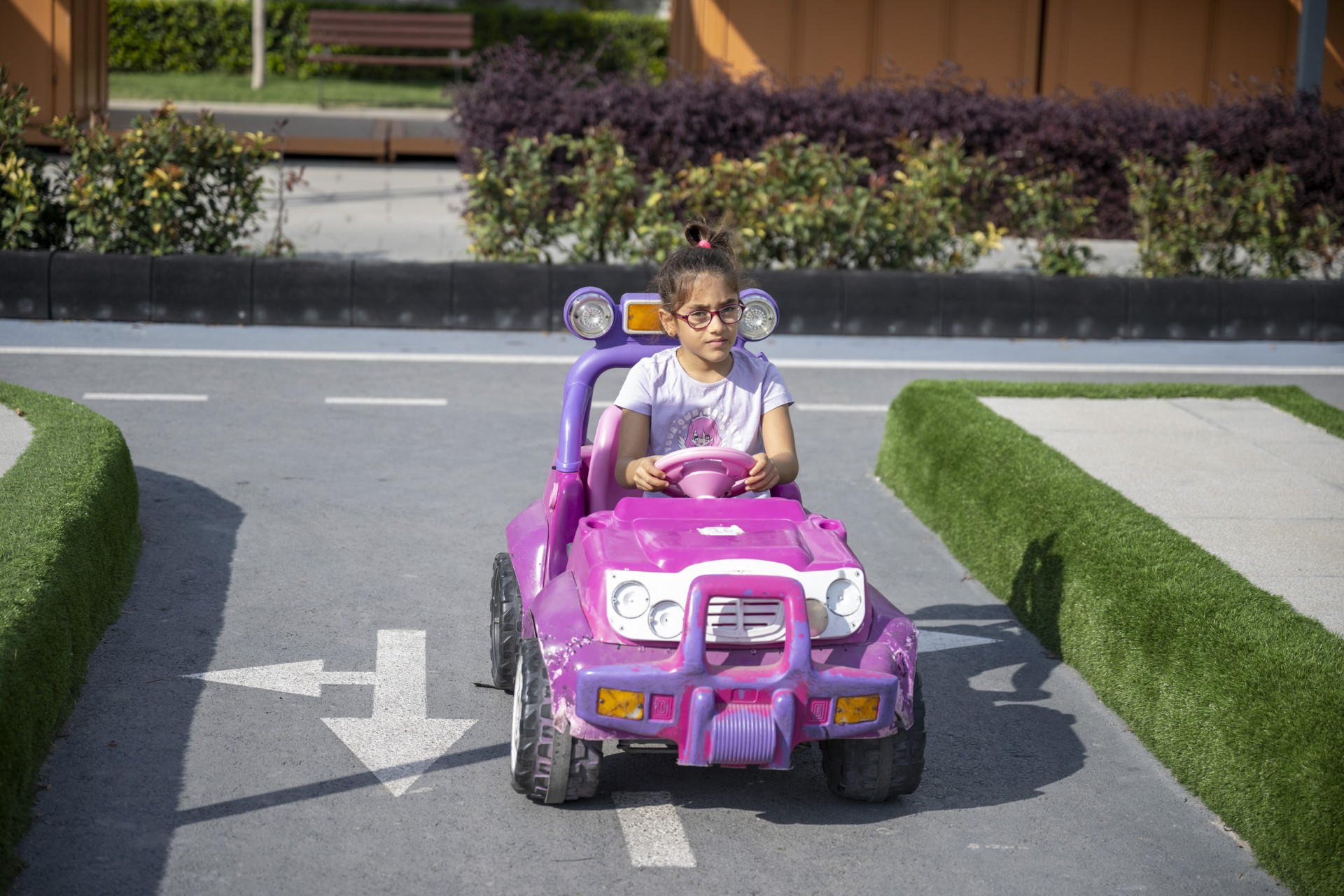Trafik Park’ı deneyimleyen 6 yaşındaki Poyraz Sadıkkaya, “Trafik Park’tayım. Akülü araba sürmek için geldim. Burada kurallara uyarak araba sürüyoruz. Arkadaşlarımla aynı anda sürmek çok eğlenceli” dedi.